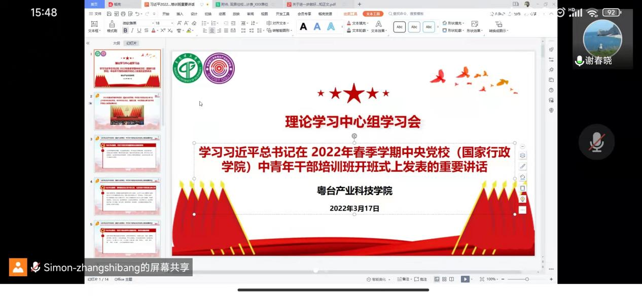 3月17日,书记宋美娴主持召开​ylg060net永利娱高理论学习中心组学习会。经理陈伟、副书记谢春晓以及中心组成员参加会议。因疫情防控要求,学习会以线上形式进行。