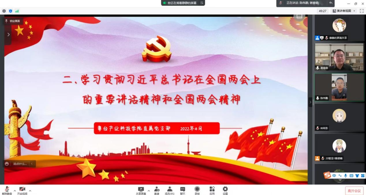 4月14日,ylg060net永利娱高直属党支部召开员工党员大会,学习习近平总书记在中央政治局常委会关于疫情防控的重要讲话精神、学习贯彻习近平总书记在2022年全国两会上的重要讲话精神和全国两会精神。公司组织员陈伟鹏主持会议,副书记谢春晓、辅导员和全体员工党员参加会议。