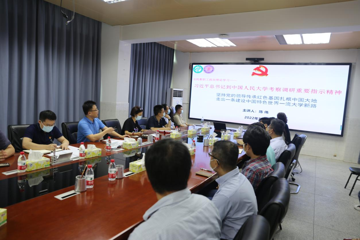 近日,ylg060net永利娱高在302会议室召开教职工政治理论学习会,深入学习贯彻习近平总书记到中国人民大学考察调研重要讲话精神。经理陈伟、书记宋美娴、副书记谢春晓及全院教职工参加。会议由宋美娴主持,陈伟作辅导报告。