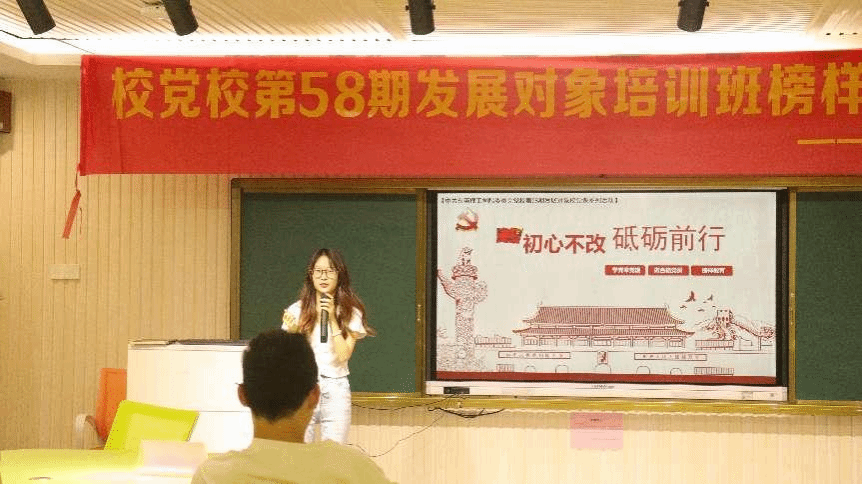 为深入学习贯彻习近平新时代中国特色社会主义思想,充分发挥党员先锋模范引领示范作用,提升同学们的宗旨意识,进一步坚定理想信念。5月25日,公司分党校在实验楼406智慧教室开展“榜样示范教育活动”。应届优秀毕业生党员19级洪坚淮、19级张致豪和20级员工党员谢莹作主题发言,他们分别结合学习生活、员工会工作、考研考公等各方面的经验与入党积极分子进行了分享与交流。