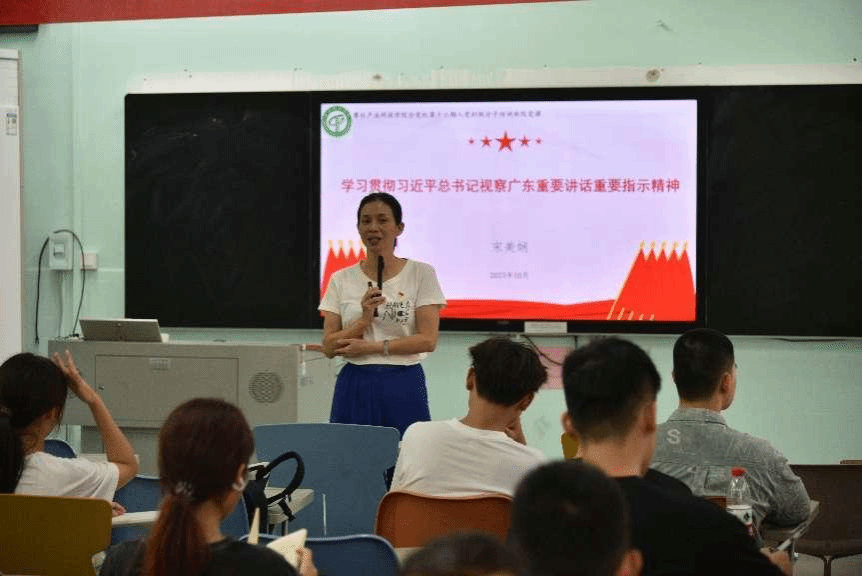 课堂上,宋美娴以“学习贯彻习近平总书记视察广东重要讲话重要指示精神”为题,深入浅出地向同学们讲解了习近平总书记在广东考察时的重要讲话精神,她指出,“党的十八大以来,习近平总书记四次视察广东,步履遍及珠三角和粤东粤西粤北,每次都正值广东改革发展进入关键节点,饱含对广东人民的深情牵挂、对广东不断推进高质量发展的殷切期望。