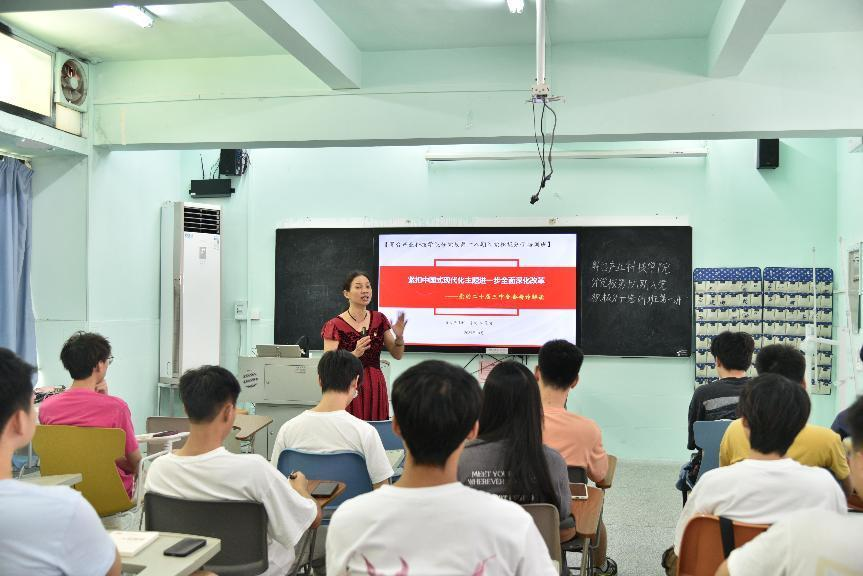 课上,宋美娴书记围绕深入学习领会习近平总书记在全会上的重要讲话和《中共中央关于进一步全面深化改革、推进中国式现代化的决定》精神,从深刻认识党的二十届三中全会的重大意义、全面准确理解《决定》提出的进一步全面深化改革重大举措以及组织部门如何全力以赴抓好全会精神贯彻落实等方面,进行了系统阐述和深入解读。宋书记指出,党的二十届三中全会是在以中国式现代化全面推进强国建设、民族复兴伟业的关键时期召开的一次极其重要的会议,对于我国进一步全面深化改革、推进中国式现代化具有重大的战略意义。她勉励同学们要紧跟党的脚步,涵养家国情怀,牢记时代使命,勤奋学习,刻苦钻研,在改革开放浪潮中争做实干青年。