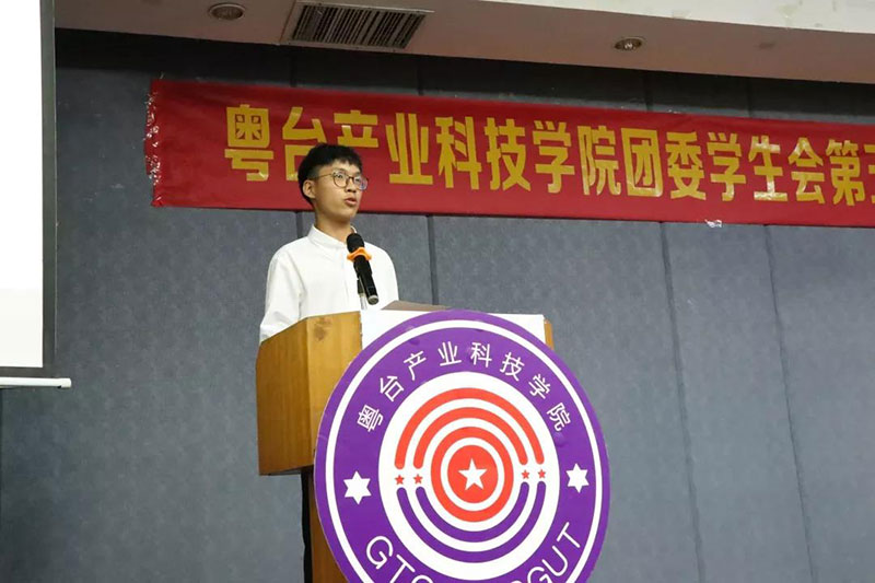 新干事代表余泽浩同学讲述了自己与粤台团委员工会的奇妙结缘,也表达了自己对接下来一年在团委员工会工作的期待,并代表全体团学5.0的同学向领导老师和学长学姐表达了自己对未来工作认真负责的决心。