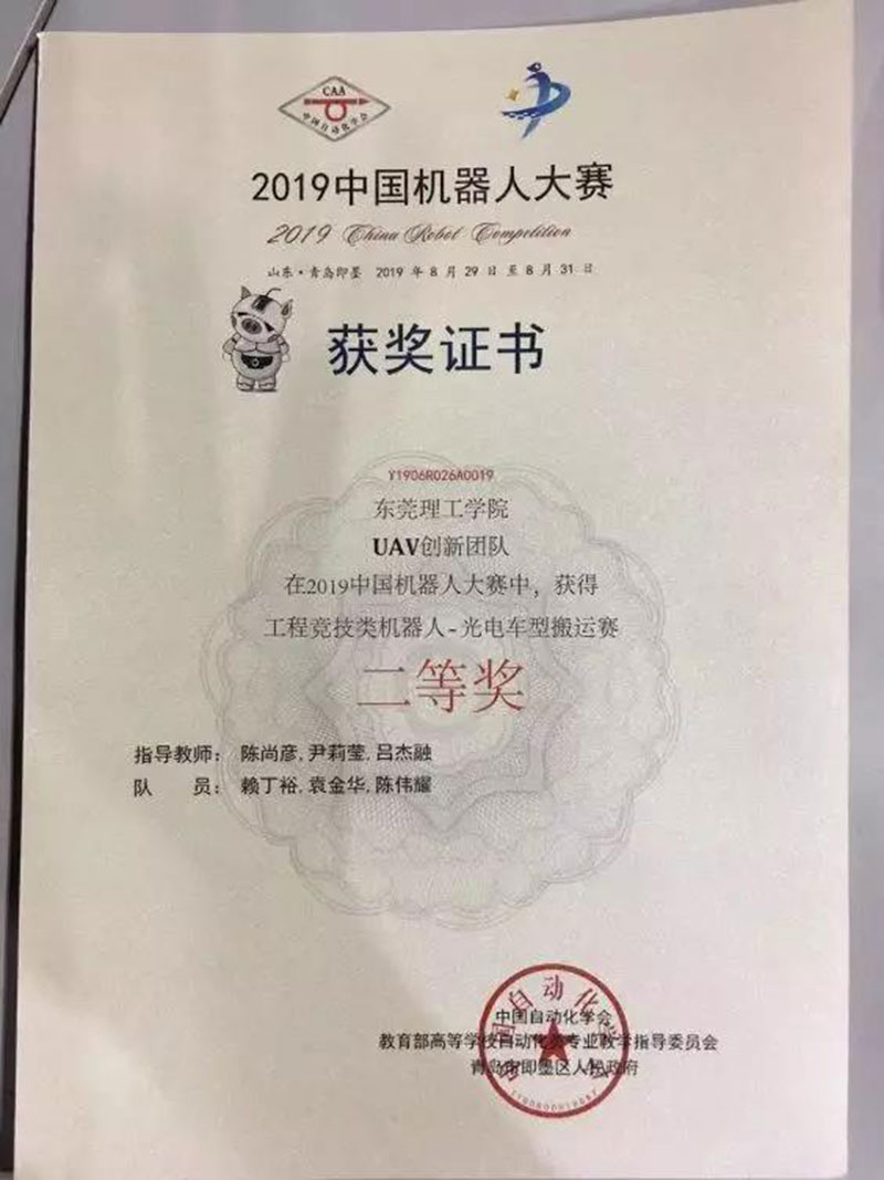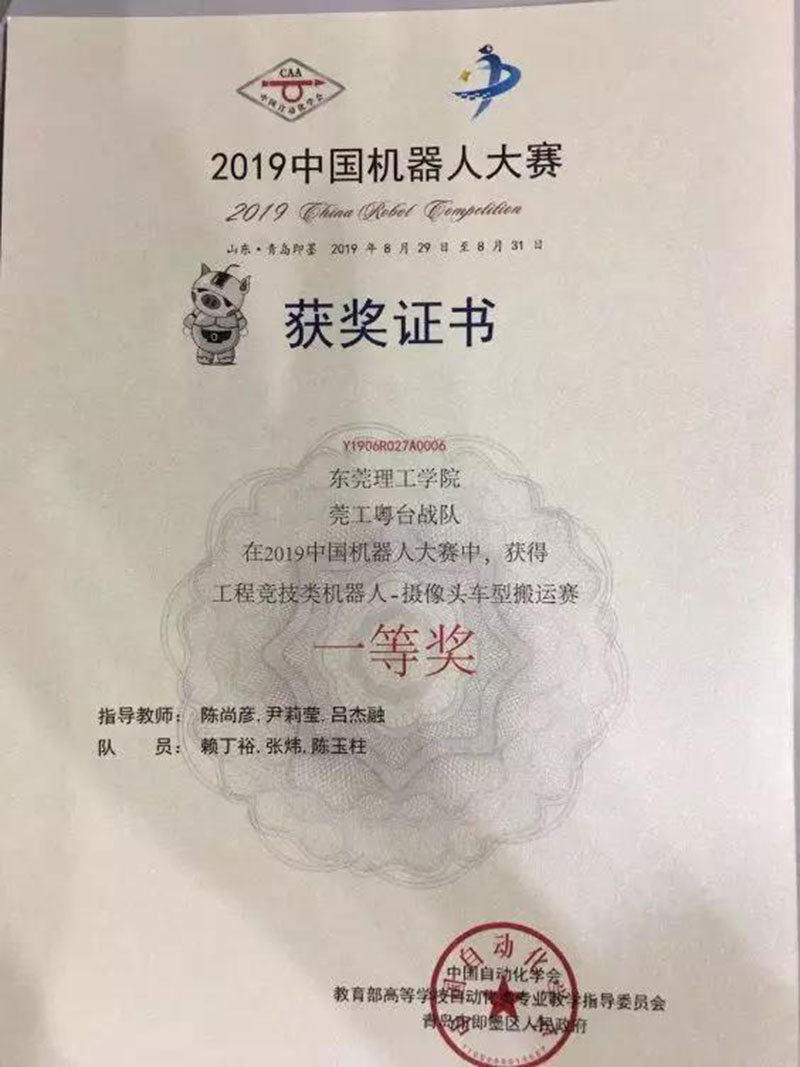 8月30日,由中国自动化学会与青岛市即墨区政府共同主办的2019中国机器人大赛在青岛即墨创智中心体育场拉开帷幕。ylg060net永利娱高选派两组代表队参加摄像头车型搬运赛项目与光电车型搬运赛项目,经过激烈的角逐,两组代表队分别荣获一等奖与二等奖。
