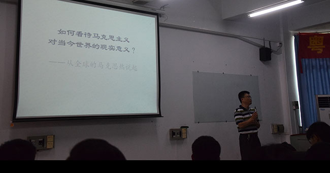 陈伟教授以发问形式开始此次授课,马克思主义是否还有现实性?马克思主义“过时”了吗?当今人类还应当在马克思主义的旗帜下向前走吗?引导同学们积极思考。