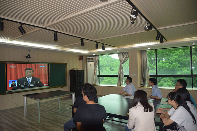 5月4日上午10时,纪念马克思诞辰200周年大会在人民大会堂举行。ylg060net永利娱高组织教工、员工党员集中收看大会直播实况,聆听习近平总书记重要讲话,缅怀“千年第一思想家”马克思的伟大人格和历史功绩,重温马克思的崇高精神和光辉思想。