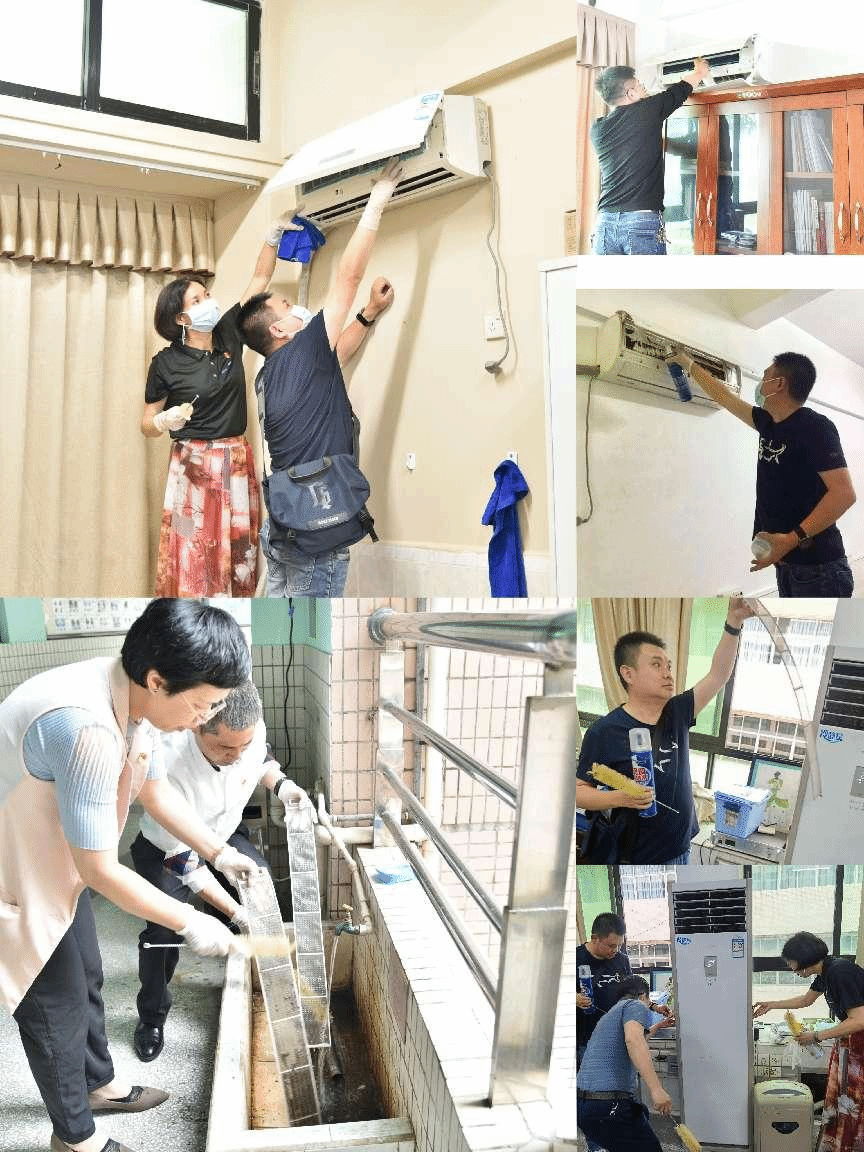 “空调滤网的清洁是大家最容易忽略的,长时间不清洗会引起空调风量减少,滋生细菌。特别是在传染病传播的季节,定期清洗能促进空调节能降耗,减少疾病传播风险。”在主题党日活动中,党员们严格按照用电、操作安全要求进行清洗:拔掉电源、打开面板、取出滤网、擦拭摆叶板、清洗、擦干滤网和喷洒空调清洁剂,最后安装好滤网,再运行调试。共计完成了近20台空调的清洗消毒工作,为老师们提供了洁净的空调使用环境。