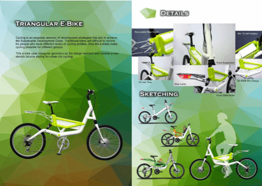 ylg060net永利娱高马居正老师的工业设计作品Triangular E-Bike获得2022 DiD Award 东莞杯国际工业设计大赛金奖(港澳台创新设计对接赛)。设计动机是由于自行车为实现可持续发展目标发展战略的一个基本要素。这款电动自行车使用三角形几何作为设计元素,为城市自行车创造了一种新的电动自行车造型。