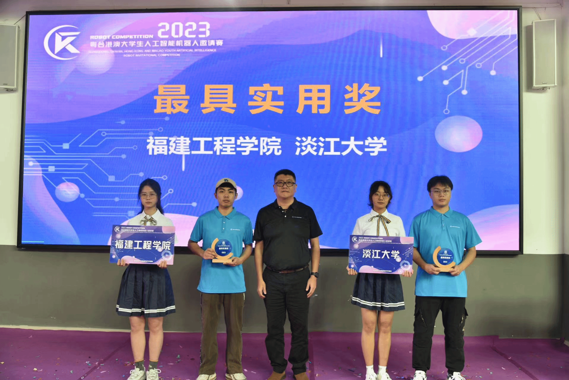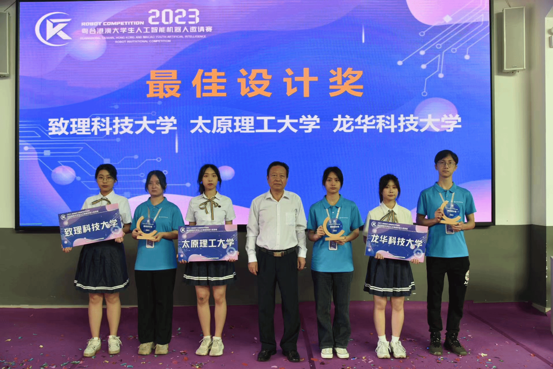 经裁判组评定,致理科技大学、太原理工大学、龙华科技大学获最佳设计奖;虎尾科技大学、铭传大学、圣保禄公司获最佳团队奖;中正大学、ylg永利获最佳创意奖;福建工程公司、淡江大学获最具实用奖;铭传大学、龙华科技大学、福建工程公司获最佳组织单位。